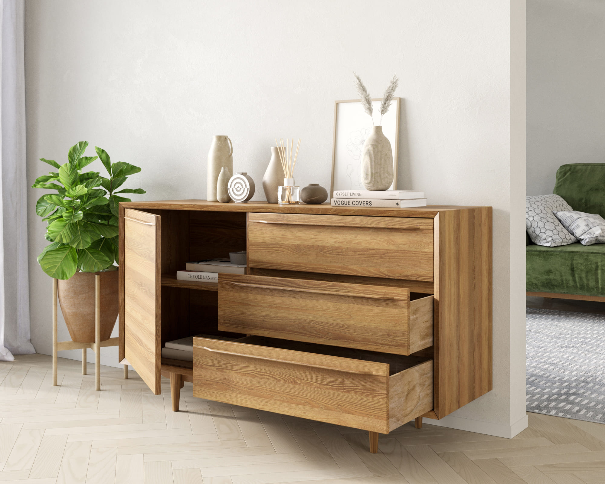 Комод "Bruni" изготавливается вручную из шпона ясеня.