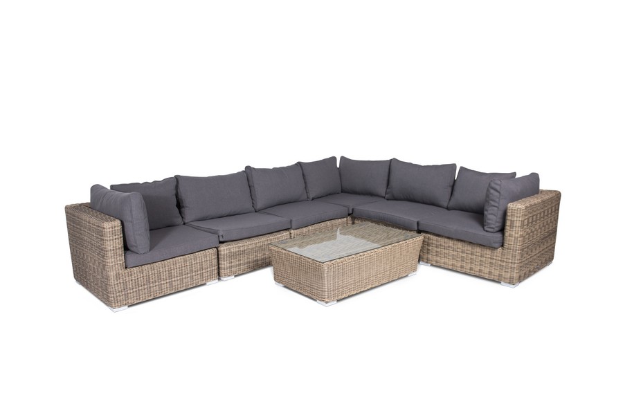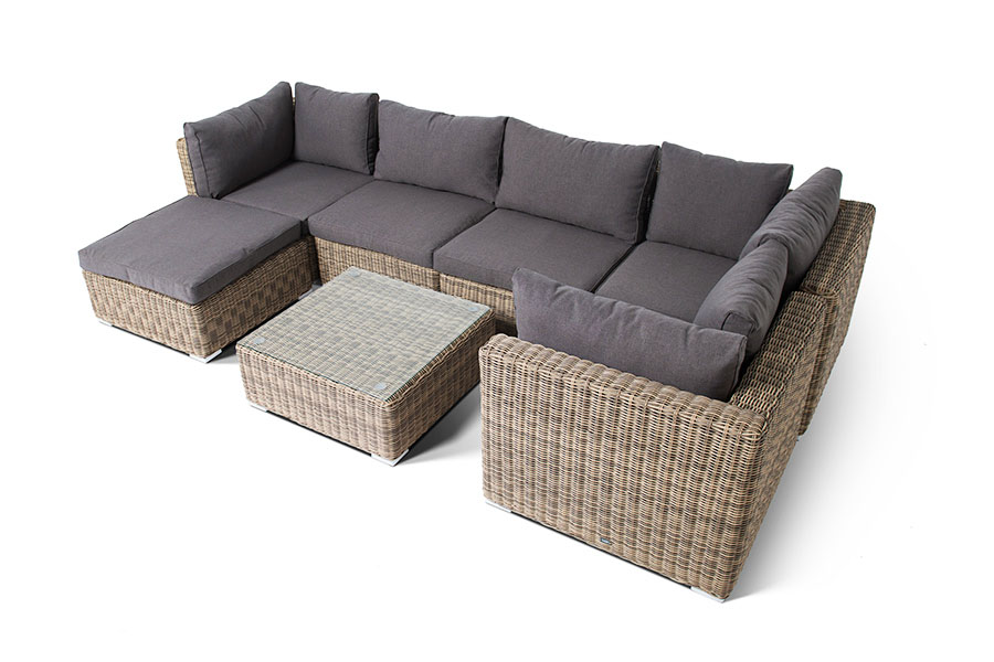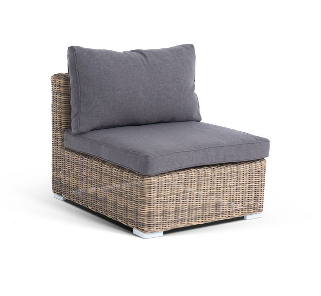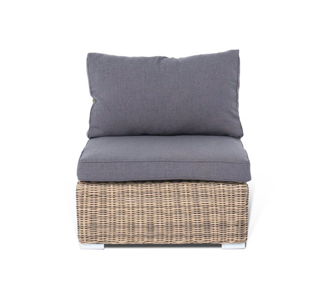 Прямой модуль "Лунджи", выполненный из круглого искусственного ротанга натурального соломенного оттенка, позволяет использовать не только как самостоятельный элемент, но и быть частью лаунж-зоны, в которую данная модель превосходно интегрируется. Габариты составляют - 740×860×650 мм, в комплект входят подушки серо-коричневого цвета.
