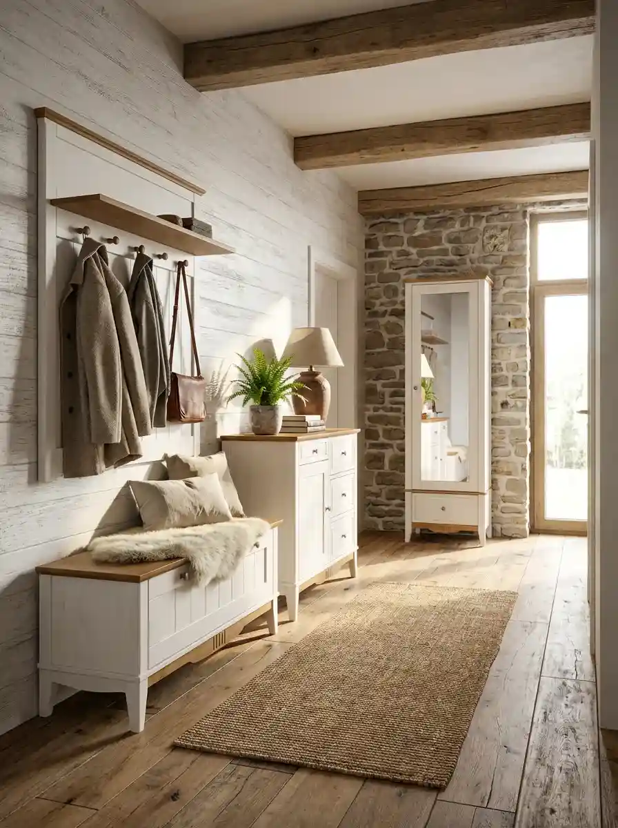 Шкаф для прихожей/белья Пенни с зеркалом белый воск/антик 24